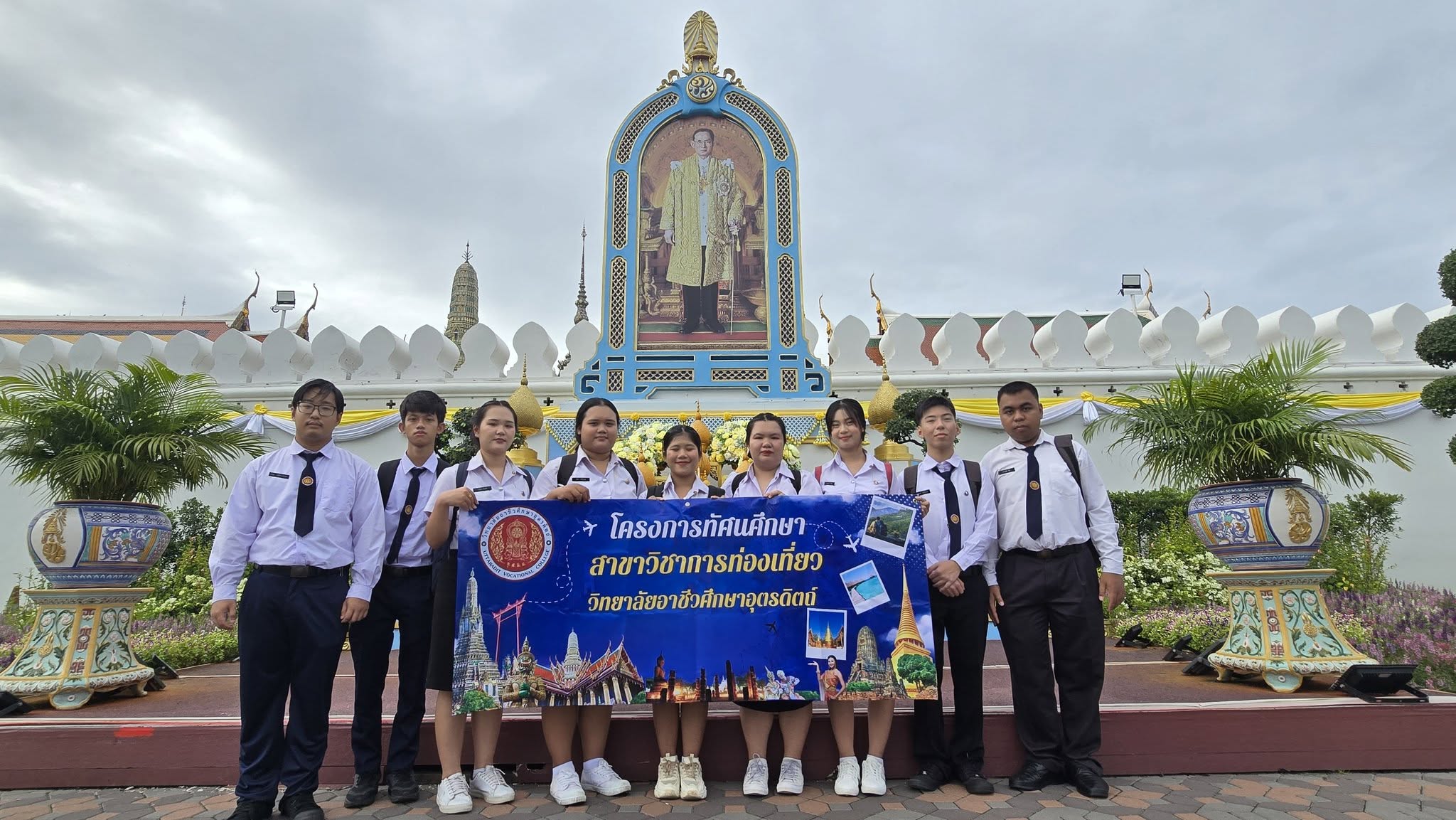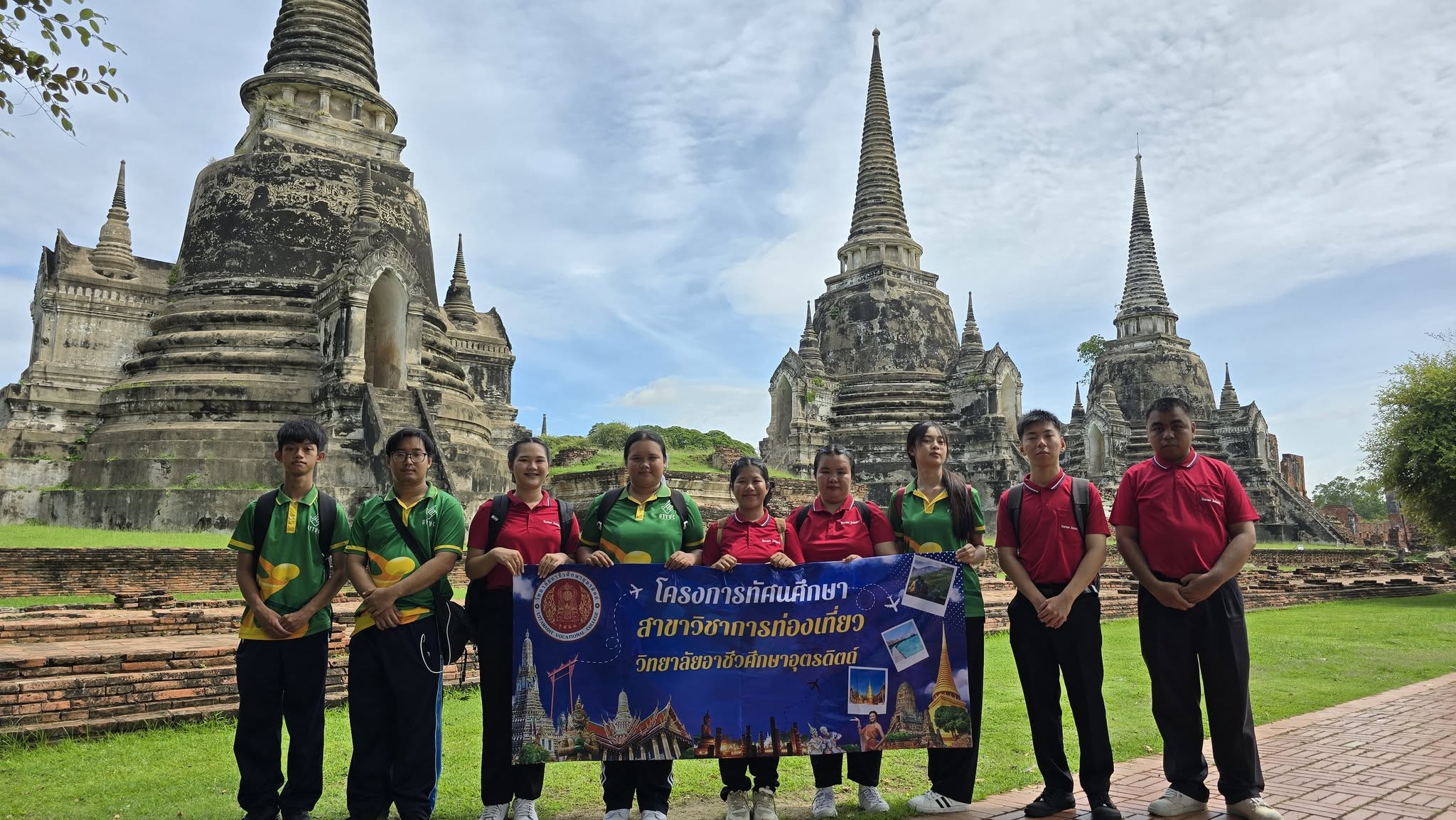 สาขาวิชาการท่องเที่ยว วิทยาลัยอาชีวศึกษาอุตรดิตถ์ ได้จัดโครงการ “ทัศนศึกษานอกสถานที่ เส้นทางการท่องเที่ยว หลักสูตรวิชามัคคุเทศก์ทั่วไป ตามมาตรฐานของกรมการท่องเที่ยว ประจำปีการศึกษา 2568” ระหว่างวันที่ 23 – 24 กันยายน 2568 เพื่อให้นักศึกษาหลักสูตรประกาศนียบัตรวิชาชีพชั้นสูง (ปวส.) สาขาวิชาการท่องเที่ยว ได้เรียนรู้จากประสบการณ์จริง ฝึกการบรรยาย การแนะนำแหล่งท่องเที่ยว และฝึกปฏิบัติการเป็นมัคคุเทศก์ในสถานที่จริง สำหรับเส้นทางการทัศนศึกษาครั้งนี้ประกอบด้วย เส้นทางที่ 1: พระบรมมหาราชวัง และวัดสำคัญในกรุงเทพมหานคร เส้นทางที่ 5: จังหวัดพระนครศรีอยุธยา โดยนักศึกษาได้ศึกษาประวัติศาสตร์ ศิลปวัฒนธรรม และเรียนรู้การบริหารจัดการการท่องเที่ยวในพื้นที่จริง เพื่อเสริมสร้างสมรรถนะด้านวิชาชีพตามมาตรฐานของกรมการท่องเที่ยว การดำเนินโครงการอยู่ภายใต้การดูแลของ ครูดวงรัตน์ แตงทอง และ ครูอรอนค์ คงนุรัตน์ ซึ่งทำหน้าที่เป็นมัคคุเทศก์ต้นแบบ ควบคุมและให้คำแนะนำแก่นักศึกษาอย่างใกล้ชิดตลอดการเดินทาง กิจกรรมดังกล่าวมีวัตถุประสงค์เพื่อให้นักศึกษาได้พัฒนาทักษะด้านการสื่อสาร การบริการ และการจัดการท่องเที่ยว รวมถึงปลูกฝังจิตสำนึกในการอนุรักษ์มรดกทางศิลปวัฒนธรรมของชาติ โครงการทัศนศึกษาครั้งนี้ นับเป็นอีกหนึ่งกิจกรรมสำคัญที่ช่วยพัฒนาศักยภาพนักศึกษาในสาขาการท่องเที่ยวให้พร้อมก้าวสู่การเป็นมัคคุเทศก์มืออาชีพในอนาคต